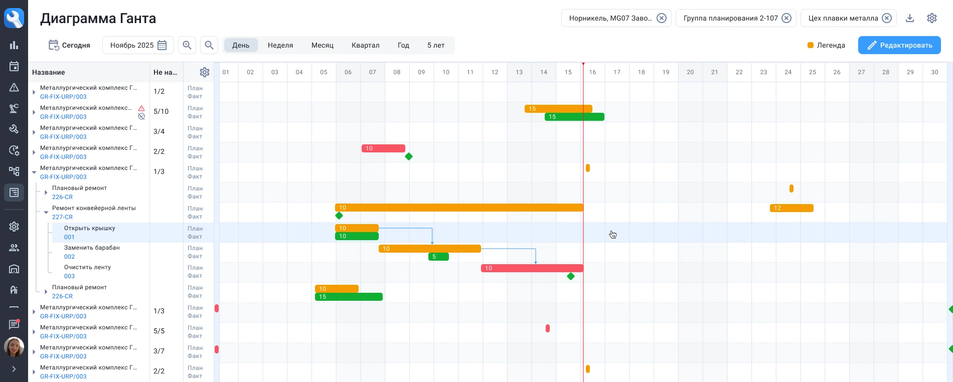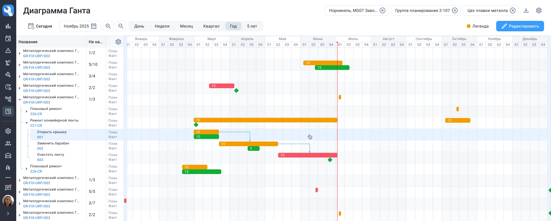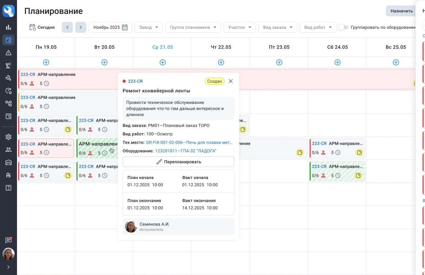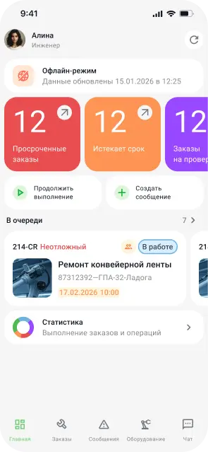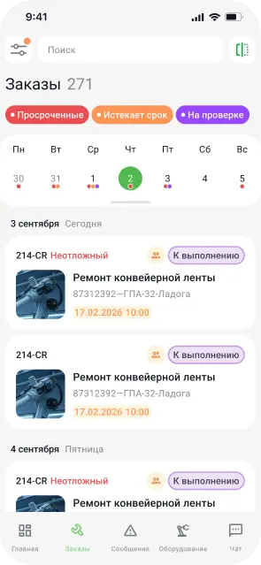 - Выполнение осмотров и ремонтов с фиксацией фактического времени выполнения операций
