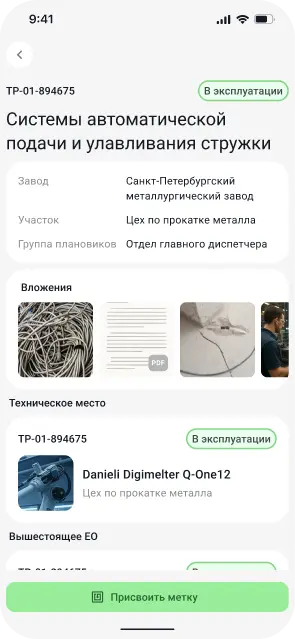 - Идентификация оборудования по NFC-меткам для оперативной фиксации дефектов