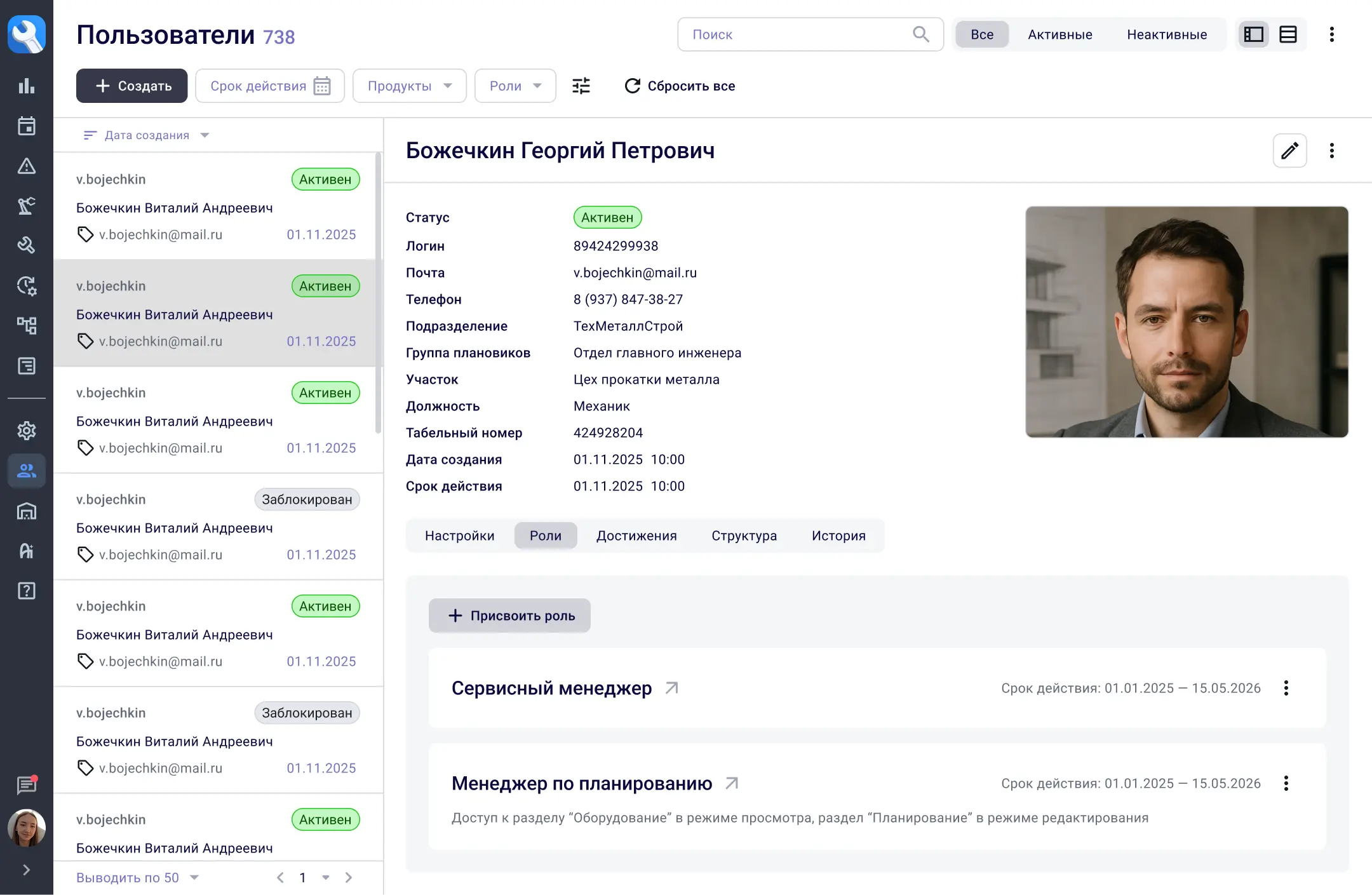 - Доступ к истории обслуживания оборудования и журналу неисправностей