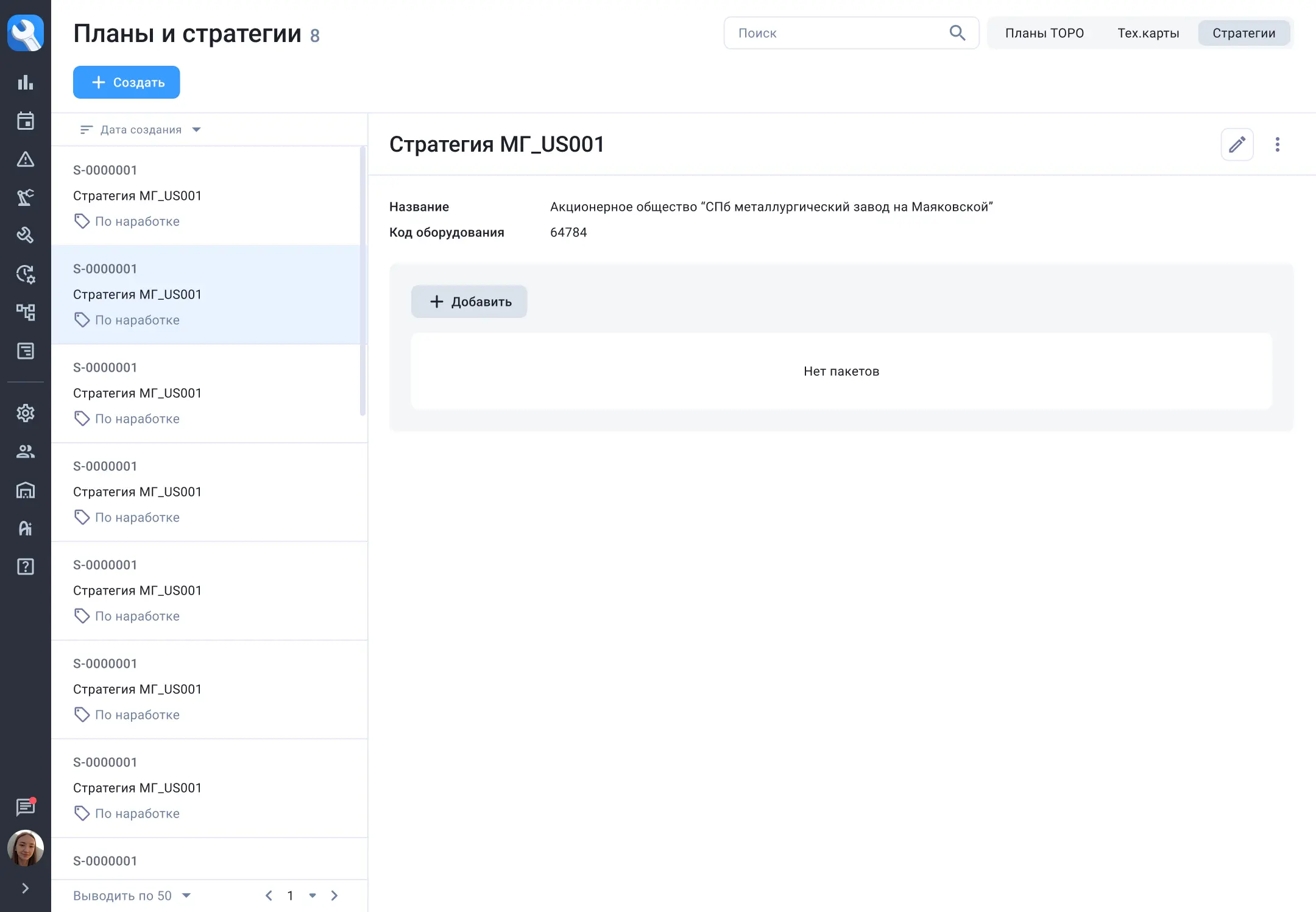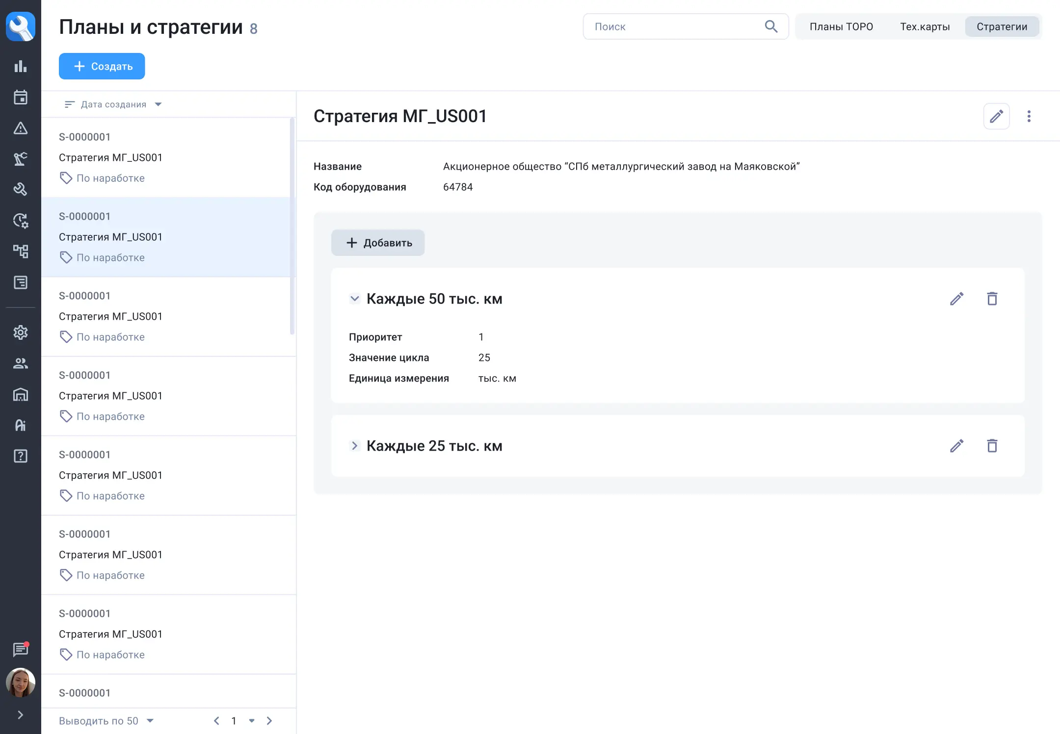 - Создание планов по счетчику, по стратегии или комбинированных с настройкой типа зависимости