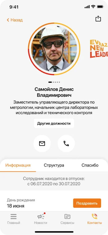 - Найти контакты нужного сотрудника через единый справочник ЕВРАЗа